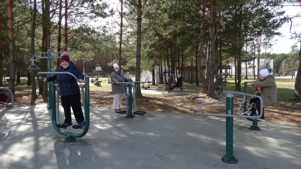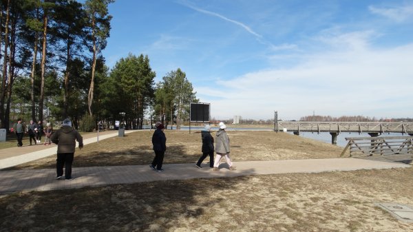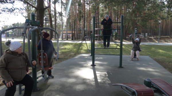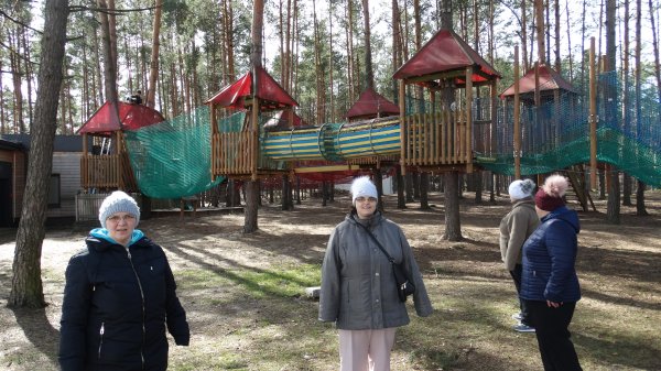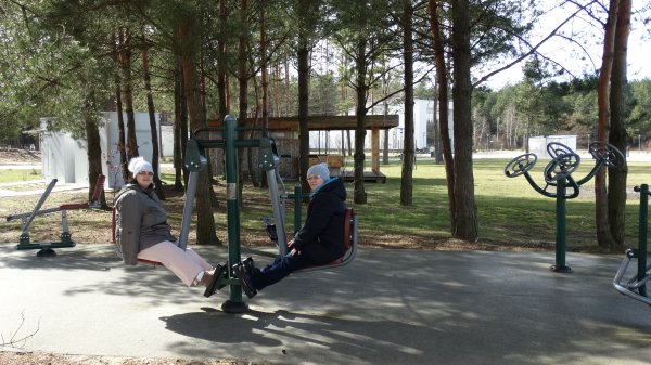 Pierwszą atrakcją był spacer nad Zalewem w Janowie Lubelskim. Zachwycaliśmy się pięknym terenem i pływającymi kaczkami. Nad brzegiem wody można było skorzystać z gimnastyki na licznych urządzeniach sportowych. Mieszkanki z wielkim zapałem wzięły się do porannych ćwiczeń.