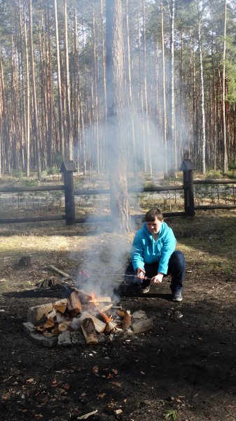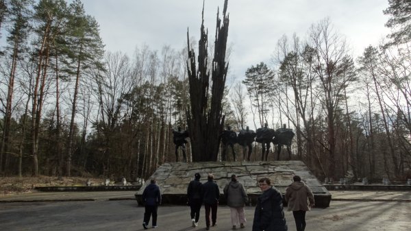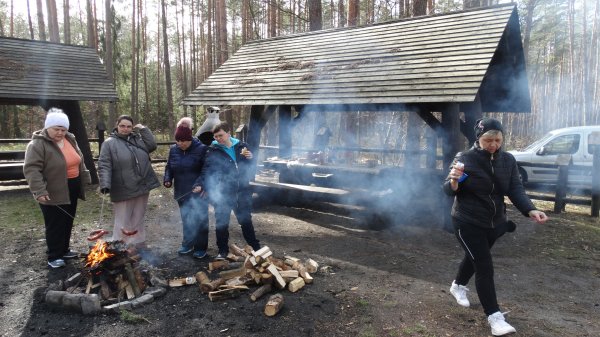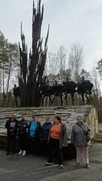 Następnie Państwo Ostrowscy zaprosili nas na przygotowaną niespodziankę, którą było ognisko i pieczenie kiełbaski. Po smacznym posiłku udaliśmy się na Porytowe Wzgórze., gdzie znajduje się Pomnik Bohaterów Porytowego Wzgórza i cmentarz poległych w walce partyzantów.