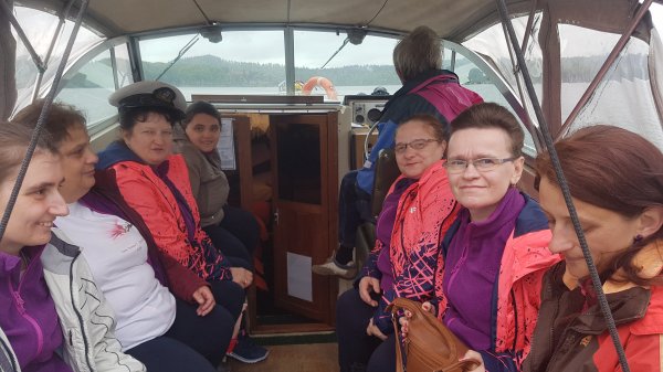 Po zjedzeniu pysznego posiłku i zrobieniu pamiątkowych zdjęć, grupa wyruszyła na wycieczkę po malowniczych Bieszczadach. Pogoda była sprzyjająca, dlatego można było udać się na rejs jachtem po Zalewie Solińskim.