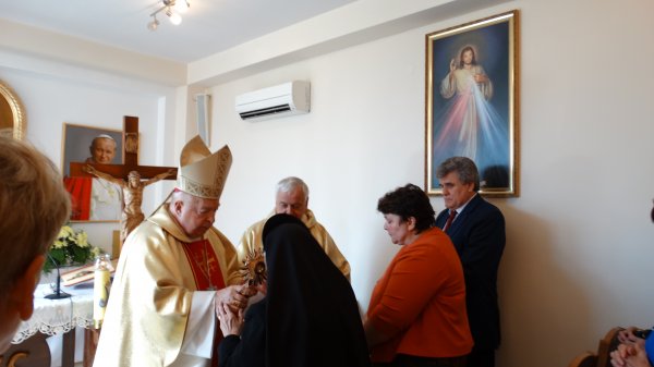 O godz. 10.30 w domowej kaplicy, Ks. Bp Kazimierz Górny i miejscowy Ks. Kapelan, sprawowali Mszę św. z wprowadzeniem relikwii św. Jana Pawła II.
